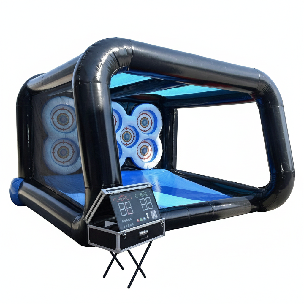 15x15x13’ Step up the competition with the Strike Zone, a high-energy inflatable arena featuring integrated LED light-up targets and a real-time electronic scoreboard. Perfect multi-ball battles, this unit tracks every hit to crown the ultimate sharpshooter. Its enclosed, dual-lane design ensures fast-paced action and safe play for any event or party.