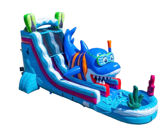 32x16x18’ Bring big smiles and summer fun to your event with our Baby Shark Water Slide inflatable! This colorful, ocean-themed slide is perfect for kids’ parties, backyard celebrations, and community events.